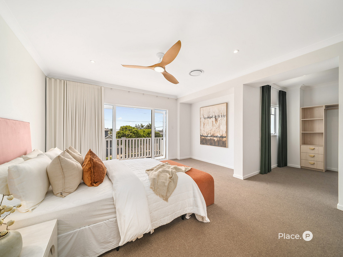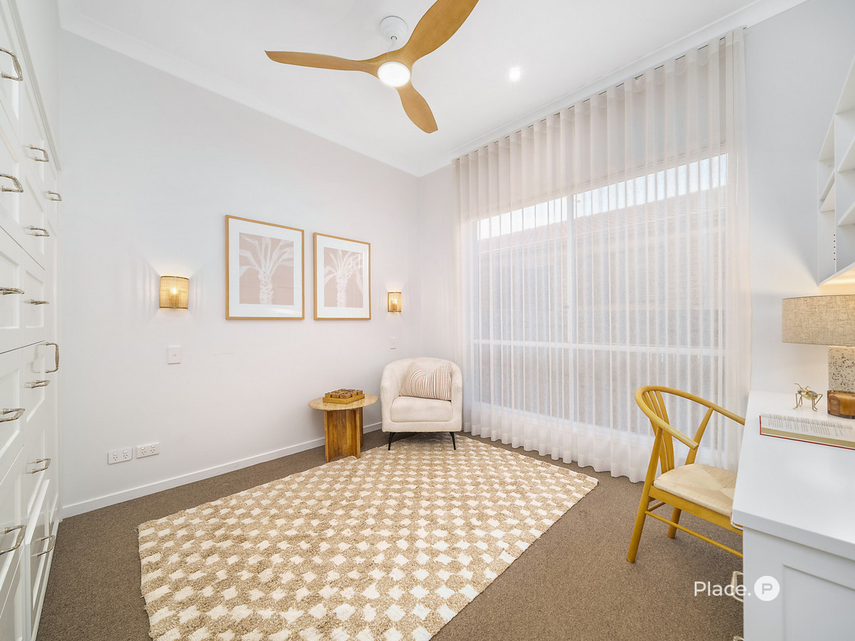 Upstairs, the sense of space continues with a media room, five bedrooms, including a master suite that feels more like a private sanctuary. Wake up to sparkling views of Moreton Bay from your balcony, unwind in a freestanding bathtub, or retreat to your private office – every detail here speaks of sophistication, comfort, and a deep connection to the coastal lifestyle.