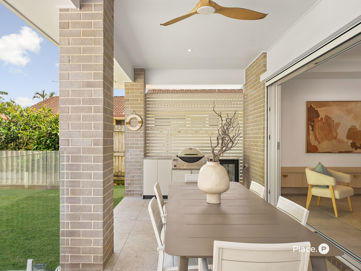 Only 150 metres from the golden sands of Queens Beach and a short stroll to the vibrant Scarborough beachfront village, this near-new Metricon family home captures the essence of luxury coastal living. Completed just two years ago on a prime positioned 405sqm block, it combines modern design with a relaxed seaside ambience, offering a refined retreat with every contemporary comfort.