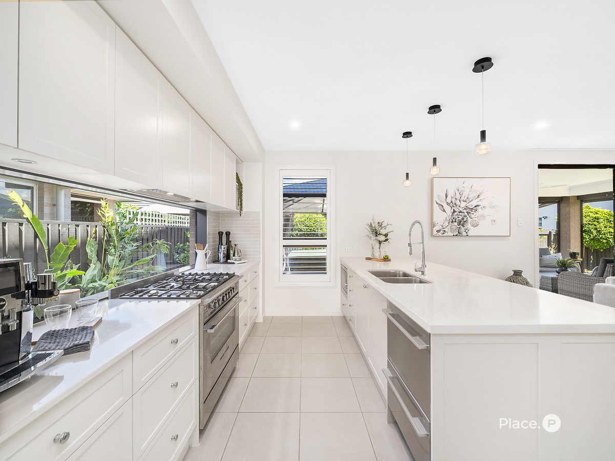 Step inside to a generous open-plan living zone anchored by an ultra-modern kitchen, superbly appointed with a 900mm oven with gas cooktop, two-drawer dishwasher, plumbed fridge cavity, and a large butler’s pantry, this is a home made for entertainers, cooks and busy households alike.