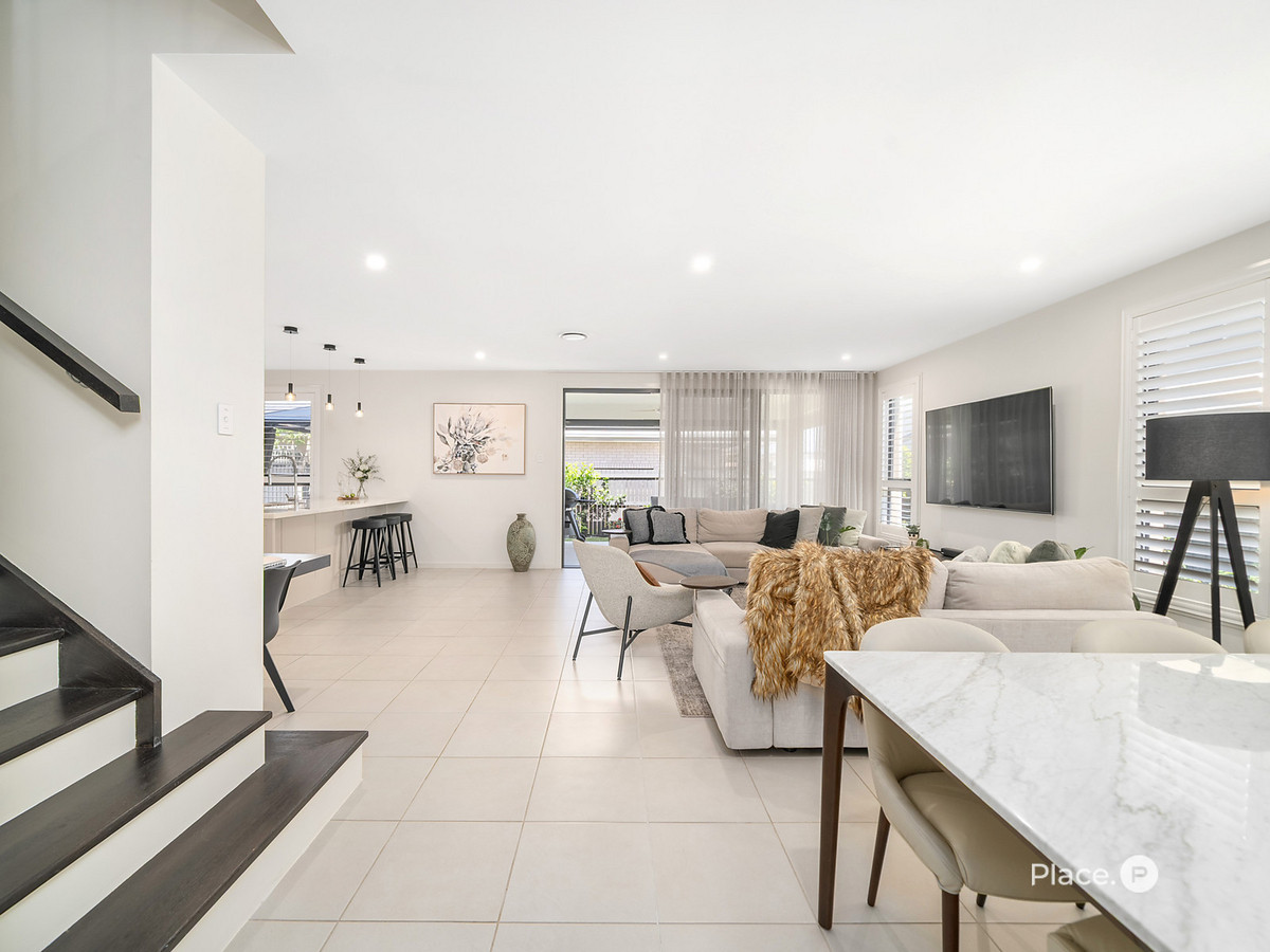 Upstairs, families will appreciate the second living area, perfect as a kids’ retreat or media space. The home features two modern bathrooms, including a private ensuite to the master bedroom, as well as a convenient powder room on the lower level.